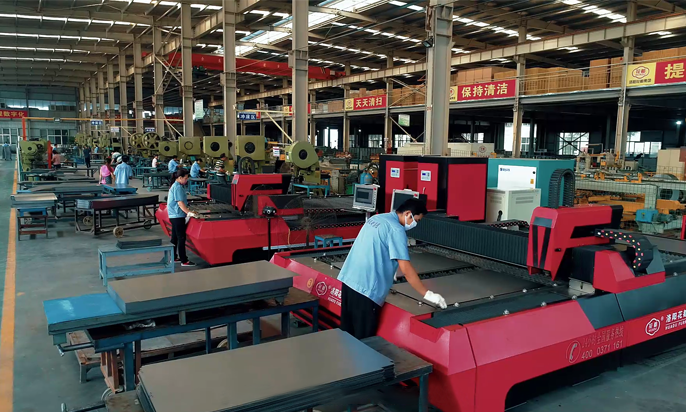 化冲剪线、数控冲床、数控折弯机、激光焊机、门或搁板一次成型线等,剪冲折焊各个环节高效精准。